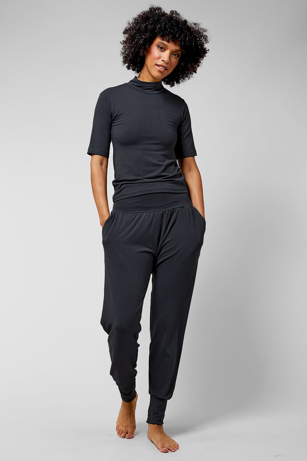 Lightweight Yoga Loose Side Pockets Cuffed Pant Slate