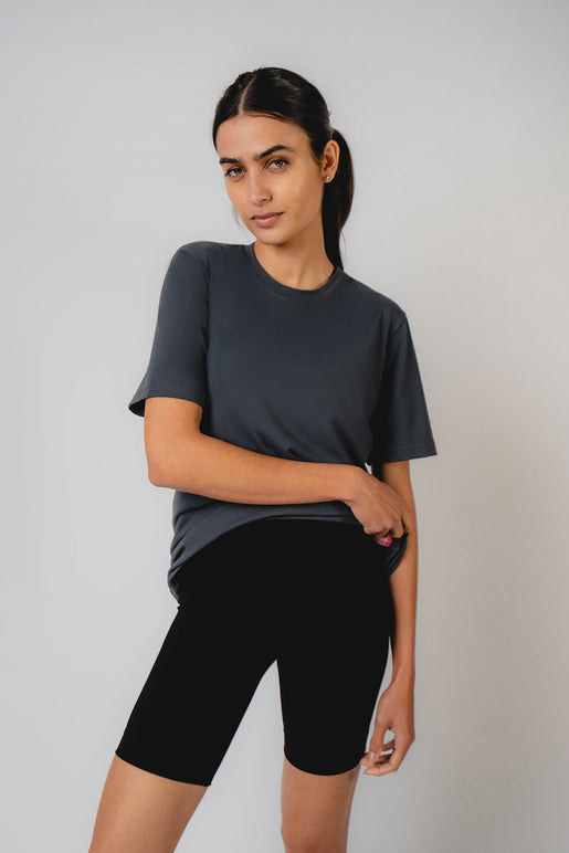 Whether you’re powering through a workout or layering for a weekend look, its relaxed silhouette offers freedom and comfort without ever looking sloppy. The subtle structure and weight of the fabric makes this feel comfortable and chic.