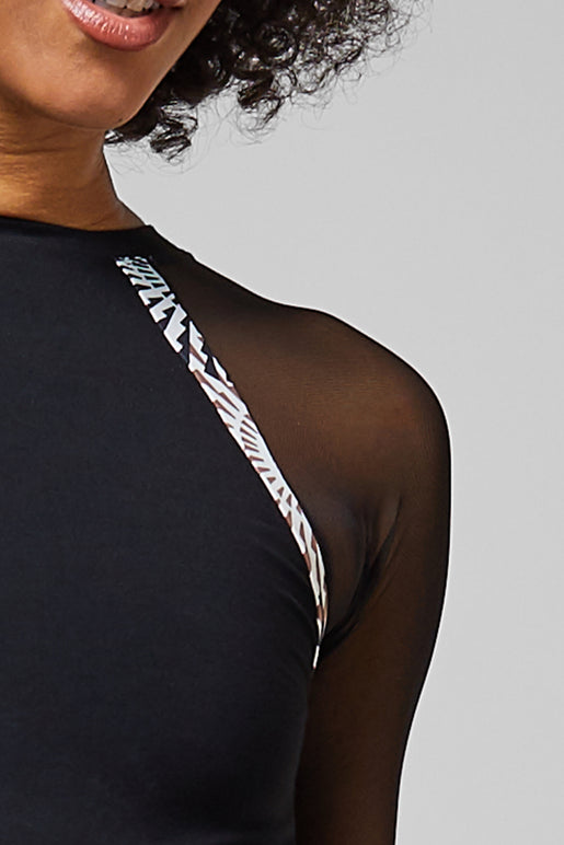 Made from lightweight, sweat wicking fabric and high stretch mesh.