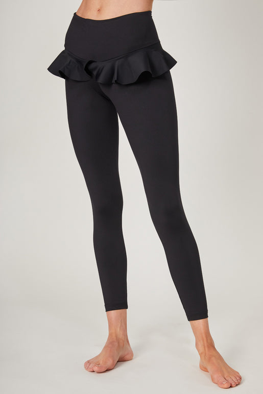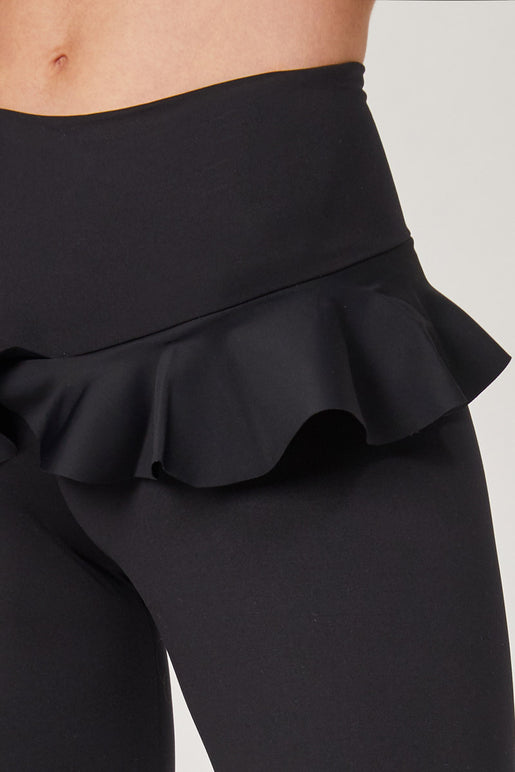 Medium Compression Waisted Leggings with Frill Hip Inset Black