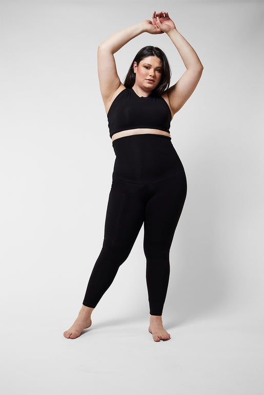 Extra Strong Compression Apple Shape High Waisted Tummy Control Leggings Black by TLC Sport