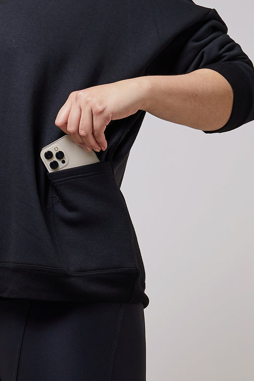 This luxury-feel sweatshirt comes with 2 side pockets to stash your keys or phone. Super easy to throw on before or after a work-out, or just to lounge in.