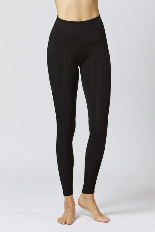 The ultimate legging in style and function. Featuring a panel with a pocket on each leg, perfect to slip in a mobile phone or keys. Super, yet very stylish and comfortable. Smooth, flattering waistband for an optimum fit, these can take you from work to workout and anything in between! Made from exclusive TLC super stretch fabric. Available Black.