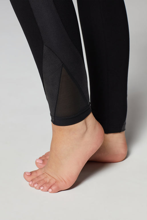 • Flattering mesh ankle inset with a contouring faux leather side panel