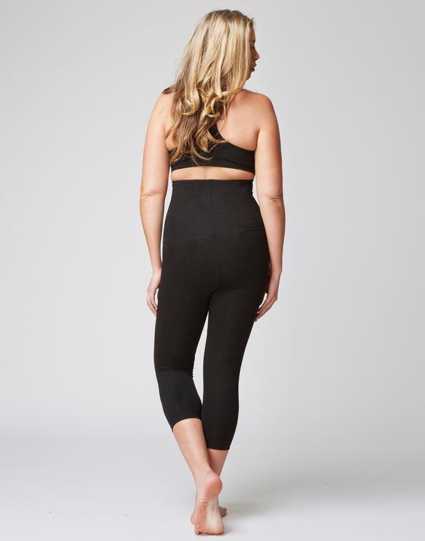 Extra Strong Compression Cropped Leggings with High Waisted Tummy Control and Side Pockets Black