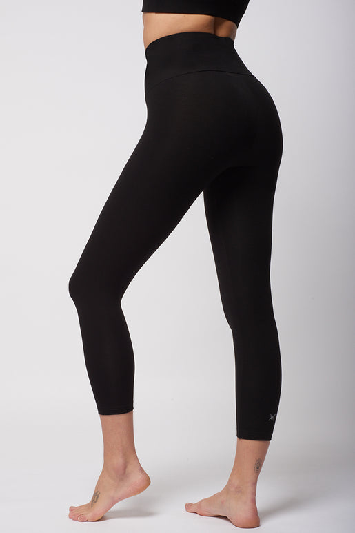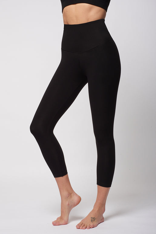 Extra Strong Compression Cropped Leggings with Standard Tummy Control Black by TLC Sport