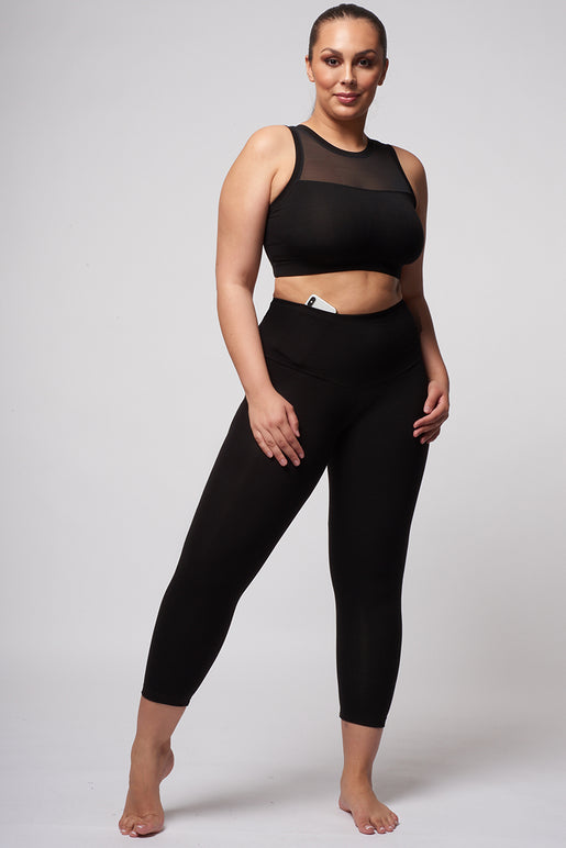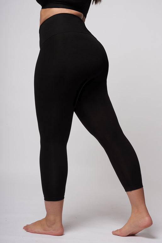 Classic fitted crop pant with deep waistband. Extra Strong Support - the ultimate belly buster! Feel more body-confident. Doubled inner power mesh waistband sucks you in and smoothes you out. Pulls in your waist & flattens your tummy and firms, smoothes and slims hips & thighs. Lifts and shapes your bottom. Supports back and legs all day. Slimming, 100% opaque, matte look fabric doesn't show sweat marks.