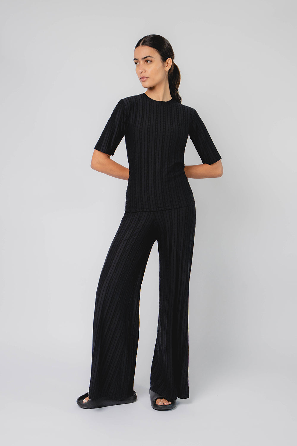 Fitted T-Shirt With Bra Cups Black Jacquard