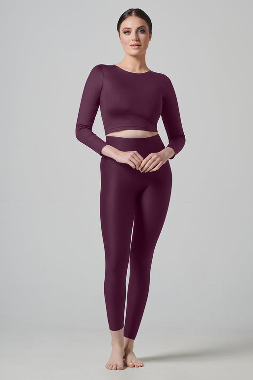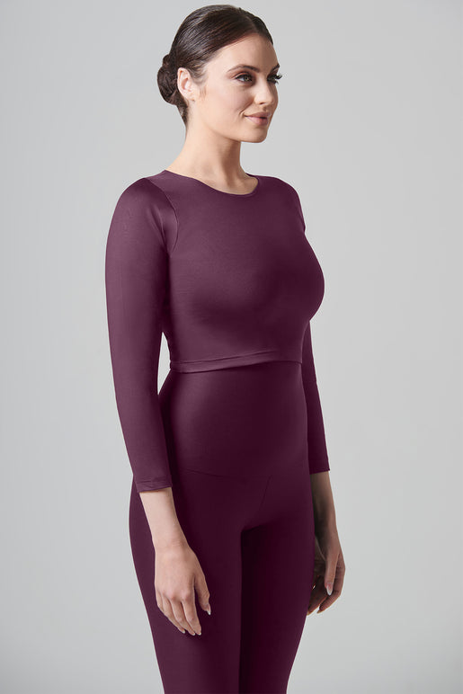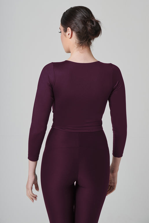 Long Sleeved High Neck Quick-Dry Cropped Top Wine