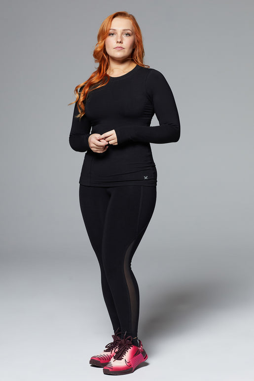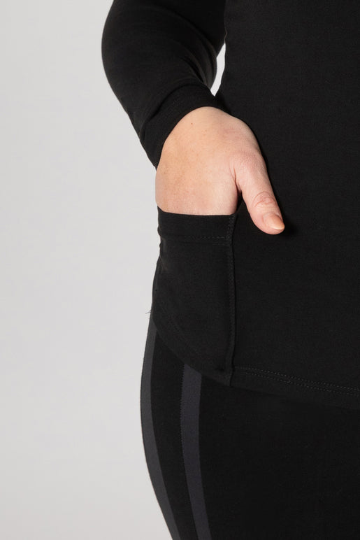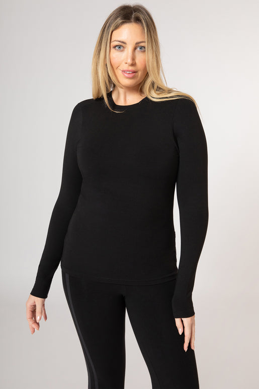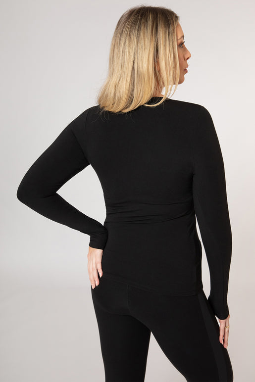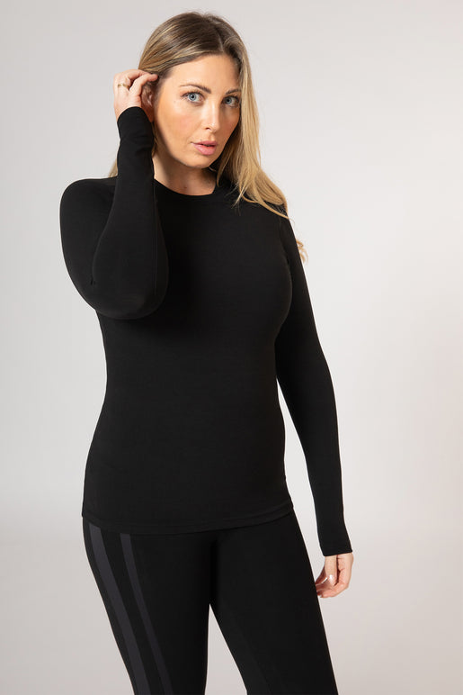 Body Sculpt Long Sleeve Full Length Top with Pocket & Built-In Bra Black