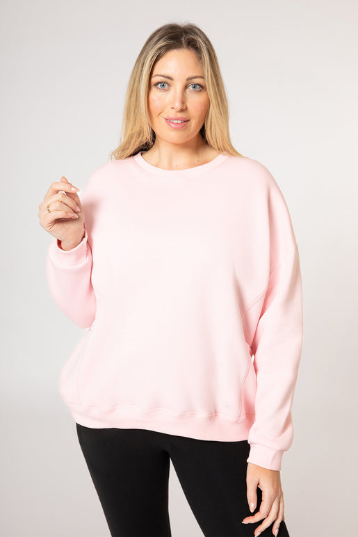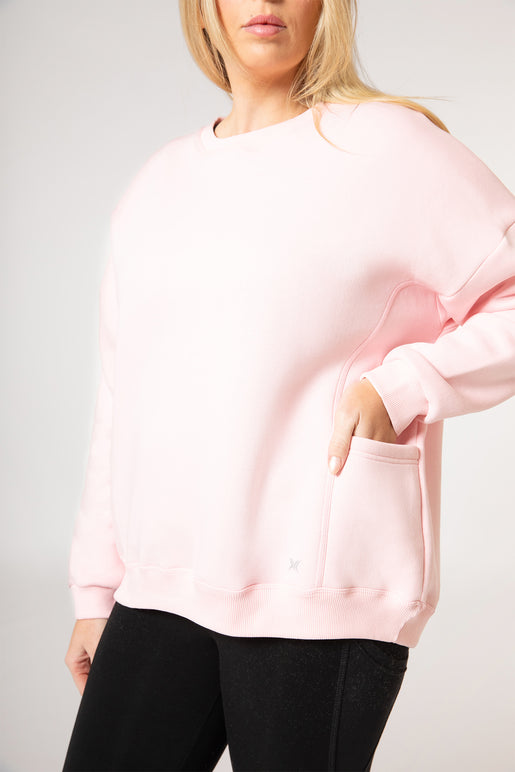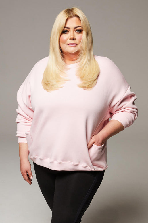 This oversized baby pink sweatshirt is a Gemma Collins Collection favourite. Designed with comfort and style in mind, this sweatshirt boasts 2 sides pockets and a buttery soft feel