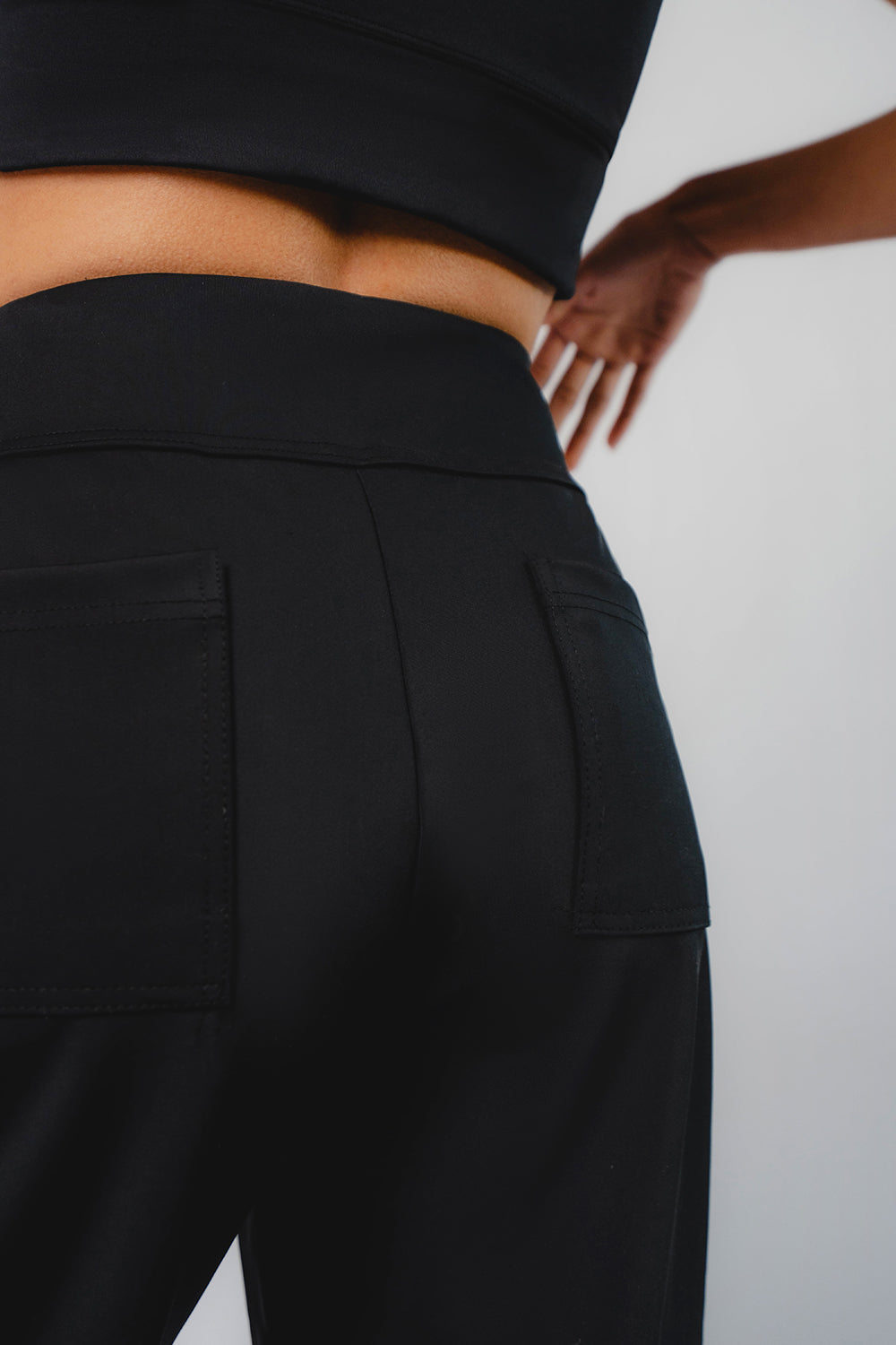 Structured Matt Tapered Loose Leg Pocket Trousers Black