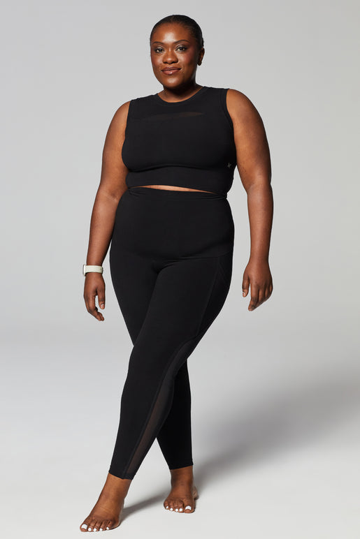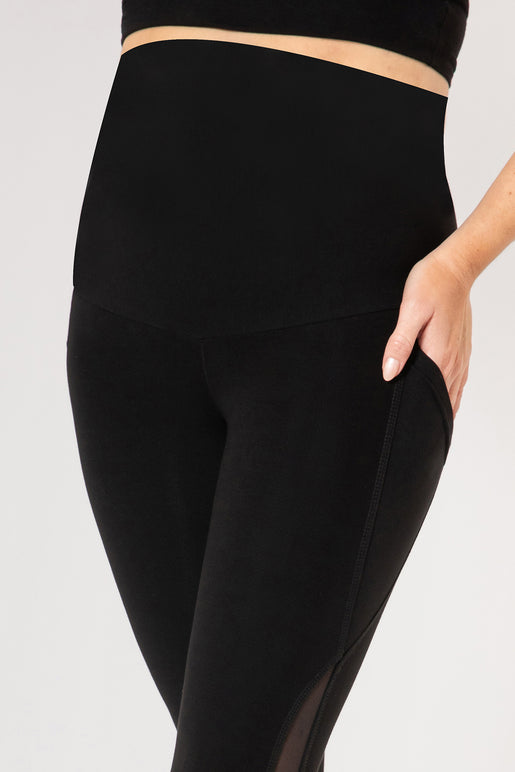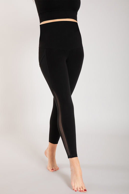 Body Sculpt Tummy Control High Waist Pocket Mesh Leggings Black