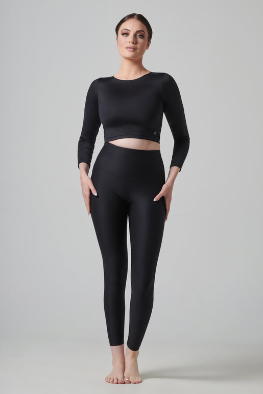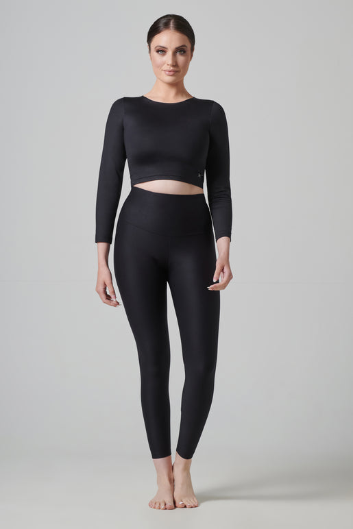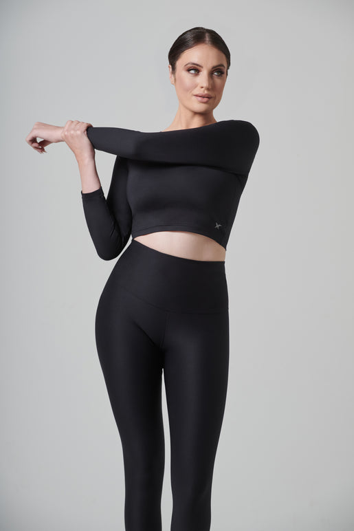 Long Sleeved High Neck Quick-Dry Cropped Top Black