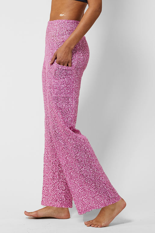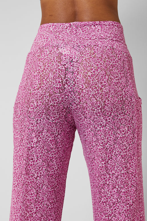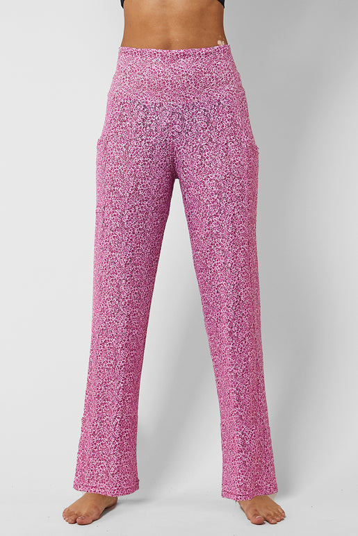Lightweight Yoga Loose Side Pockets Pant Pink Flower