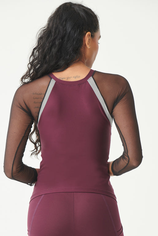 Reversible Raglan Mesh Long Sleeve Yoga Top Wine