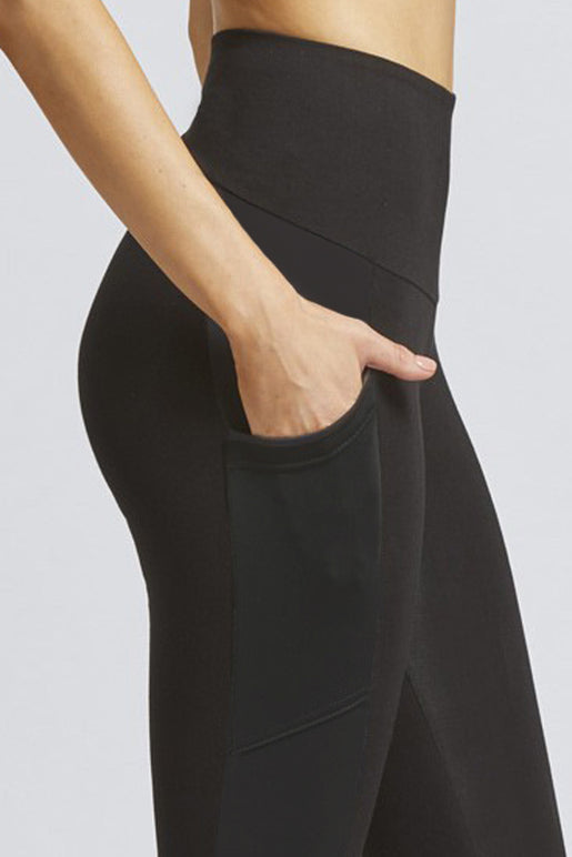 The ultimate legging in style and function. Featuring a panel with a pocket on each leg, perfect to slip in a mobile phone or keys. Super, yet very stylish and comfortable. Smooth, flattering waistband for an optimum fit, these can take you from work to workout and anything in between! Made from exclusive TLC super stretch fabric. Available Black.