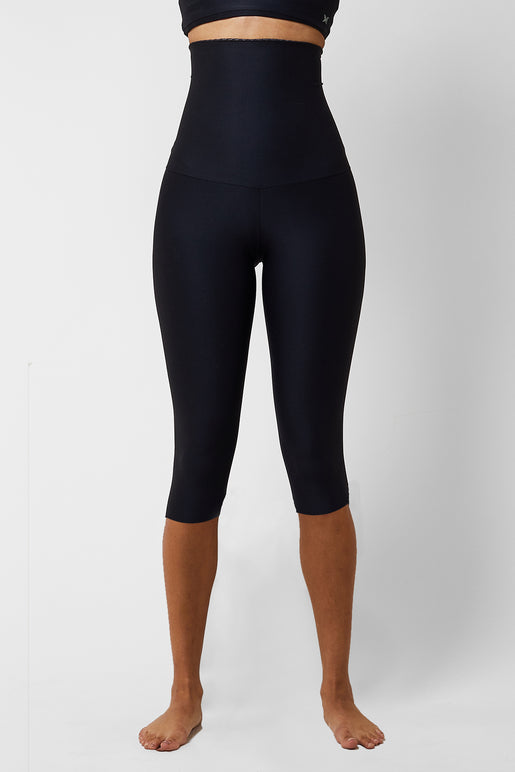 Extra Strong Compression High Waisted Running Capri with Tummy Control Black