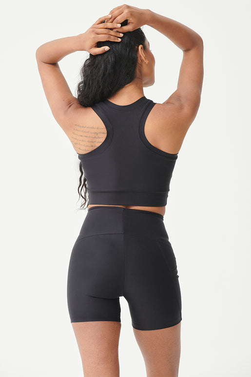 Medium Compression Mini Shorts with Side Pocket Black by TLC Sport