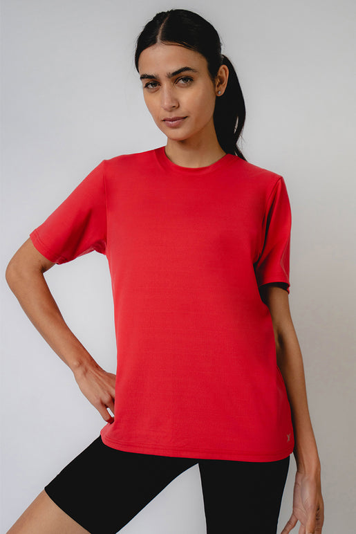 Jersey Training Short Sleeve T-Shirt Red Cotton