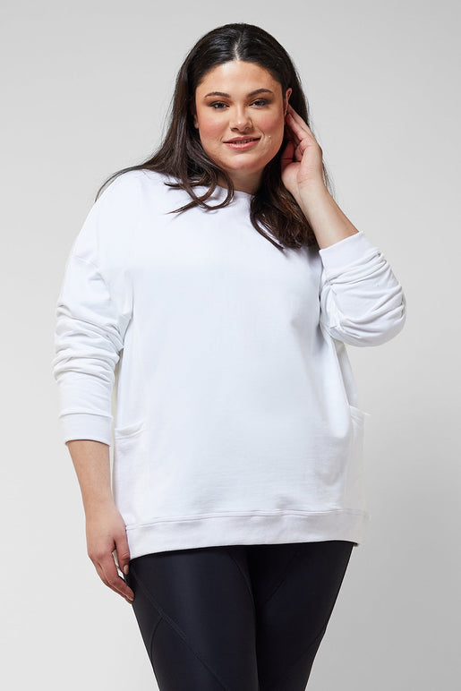 Leggings with Thermal Brushed Fabric Black + Relaxed Fit Sweatshirt With Pockets White