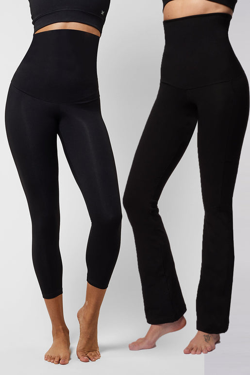 Lightweight Strong Compression Bootcut with High Waisted Tummy Control Black + Lightweight Strong Compression Cropped Leggings with High Waisted Tummy Control Black