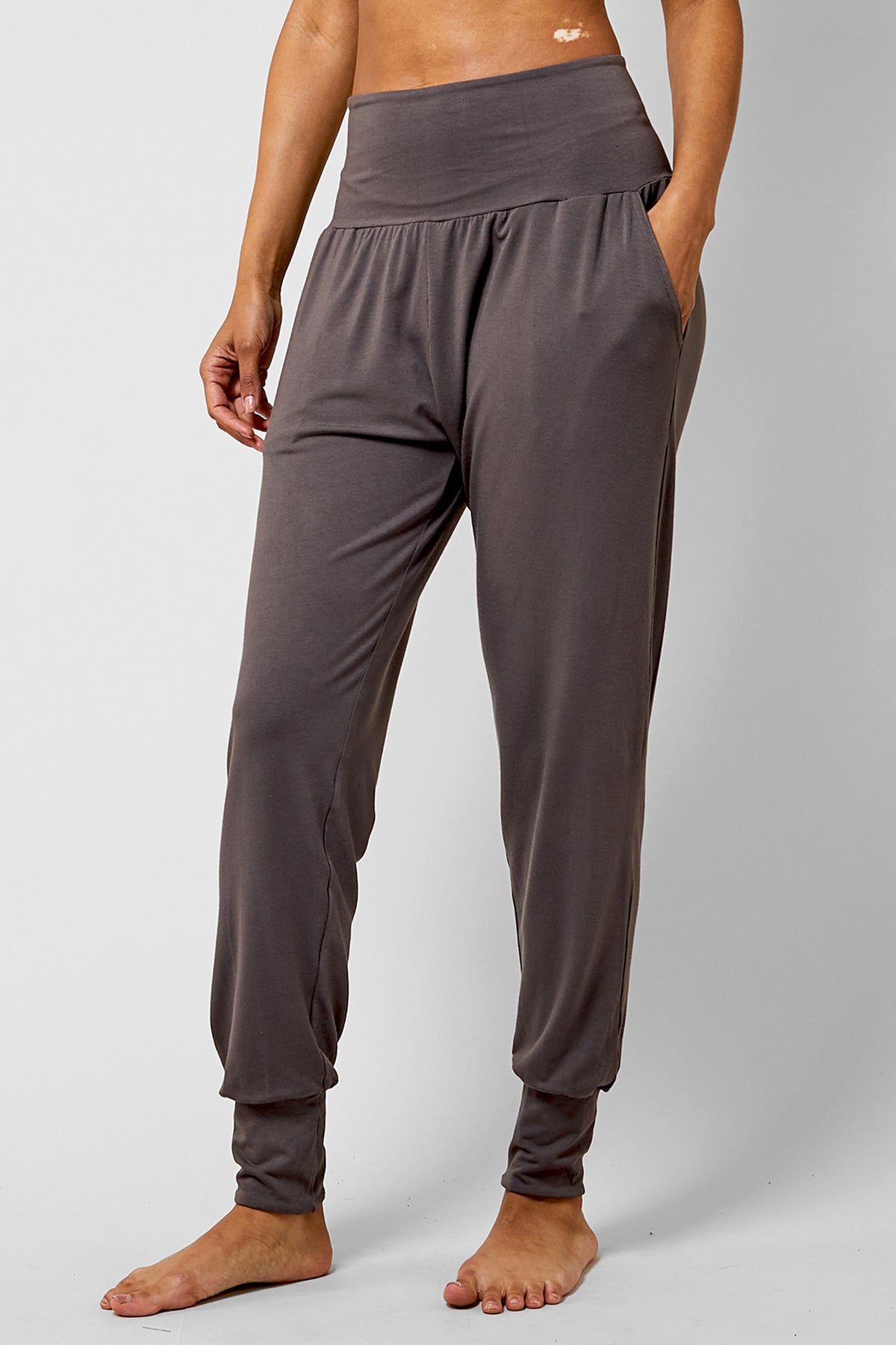 Lightweight Yoga Loose Side Pockets Cuffed Pant Mink + Yoga Short Sleeve Polo Top Mink