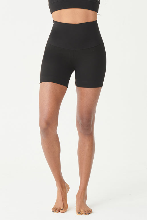 Snug fitting mini shorts with a high rise tummy control waistband, perfect to wear as they are or under dresses or skirts for added support and sculpting.