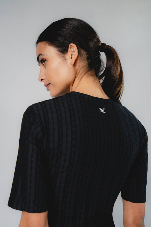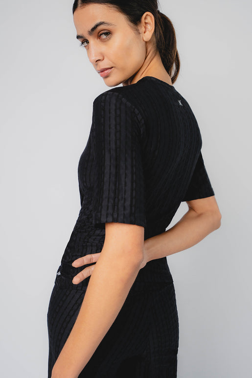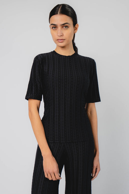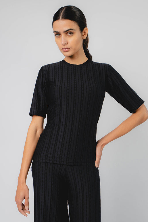 Fitted T-Shirt With Bra Cups Black Jacquard