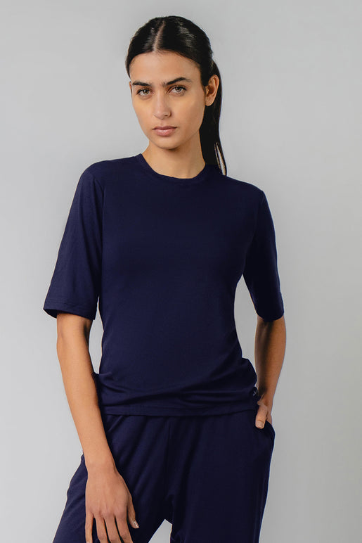 Fitted T-Shirt With Bra Cups Navy