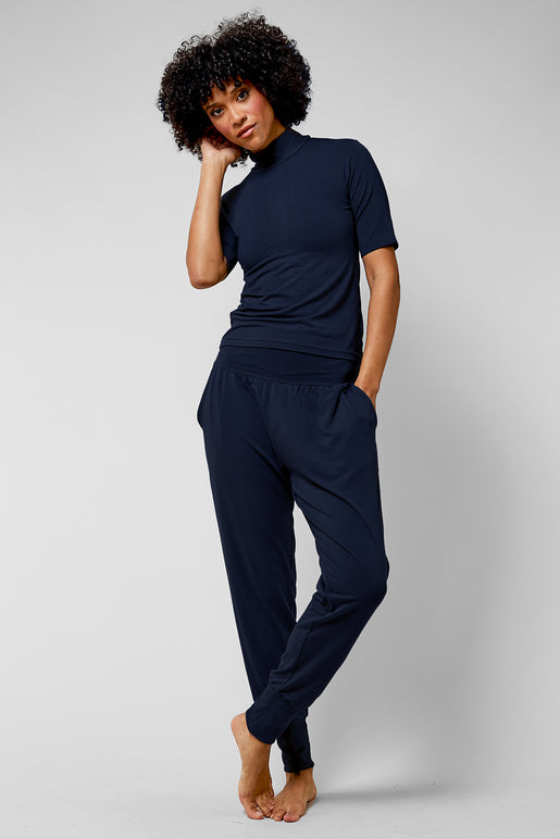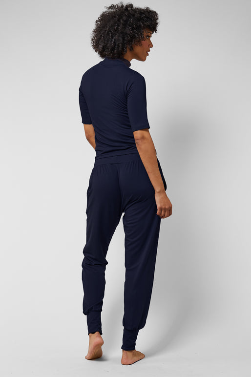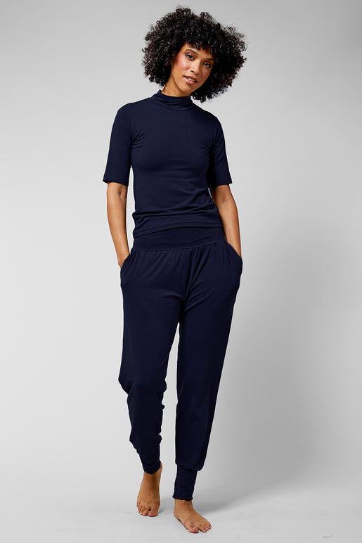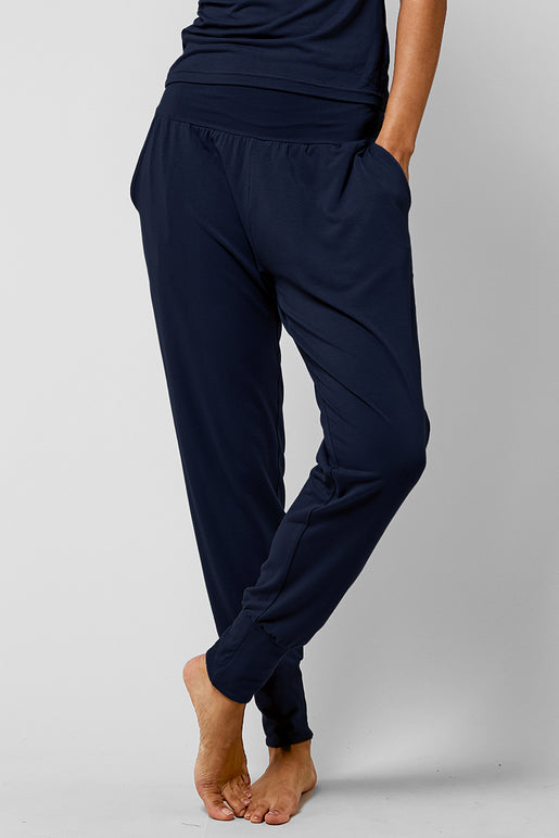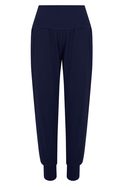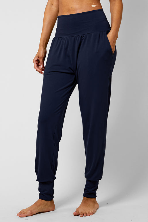 Lightweight Yoga Loose Side Pockets Cuffed Pant Navy