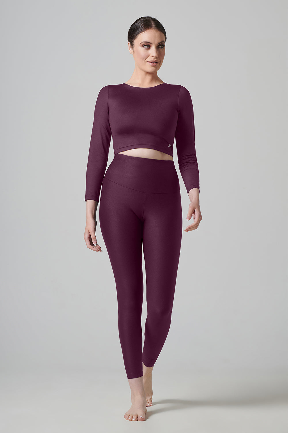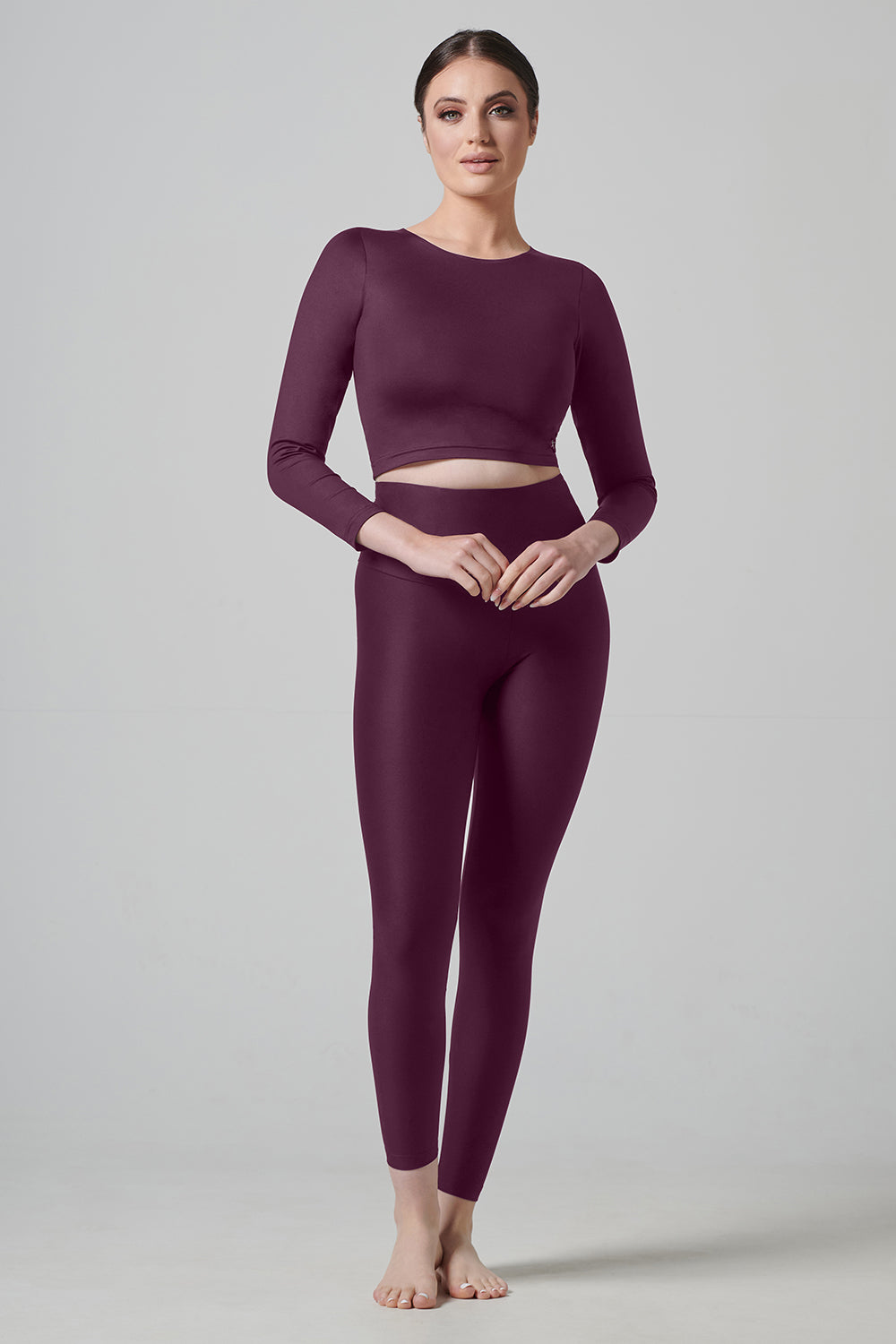 Long Sleeved High Neck Quick-Dry Cropped Top Wine