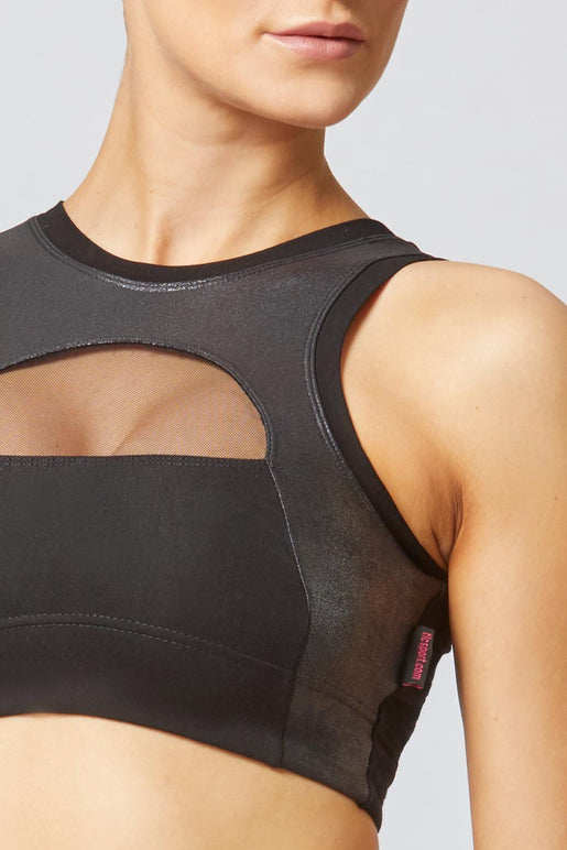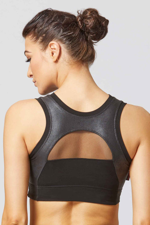 A unique supportive bra ideal for running, core or high impact fitness. Features snake-print detailed paneling for added style. Super strong control mesh insets keeps you supported and cool. Reversible style - simply turn the bra back to front for a totally different look. Maximise your work-out wardrobe with this key staple. Doubled lined for added support and comfort. Made from classic TLC durable viscose fabric. Available Black only.