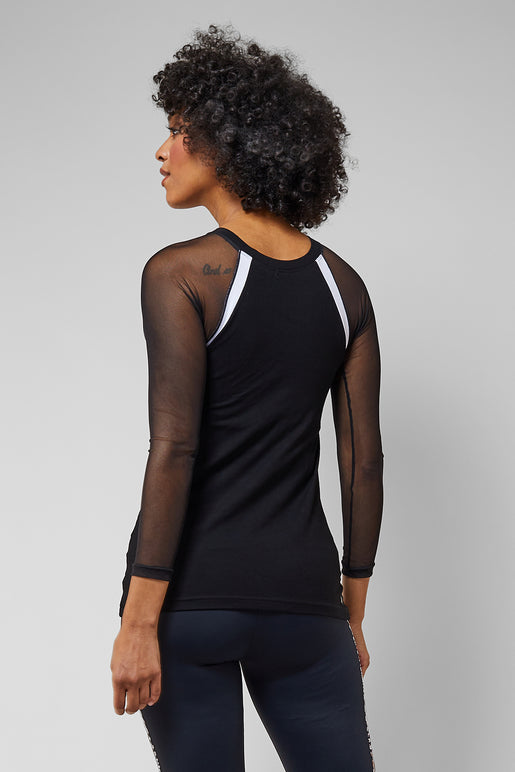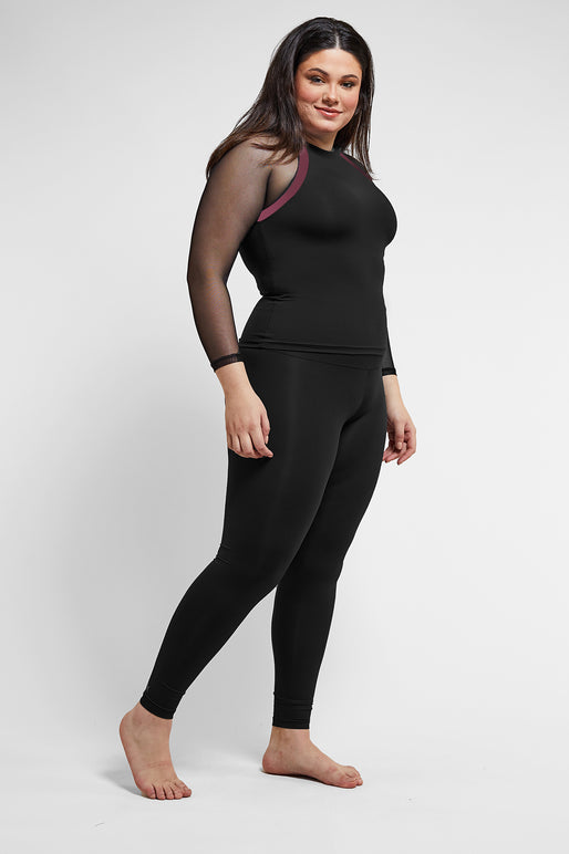 Reversible Raglan Mesh Long Sleeve Yoga Top Black with Wine